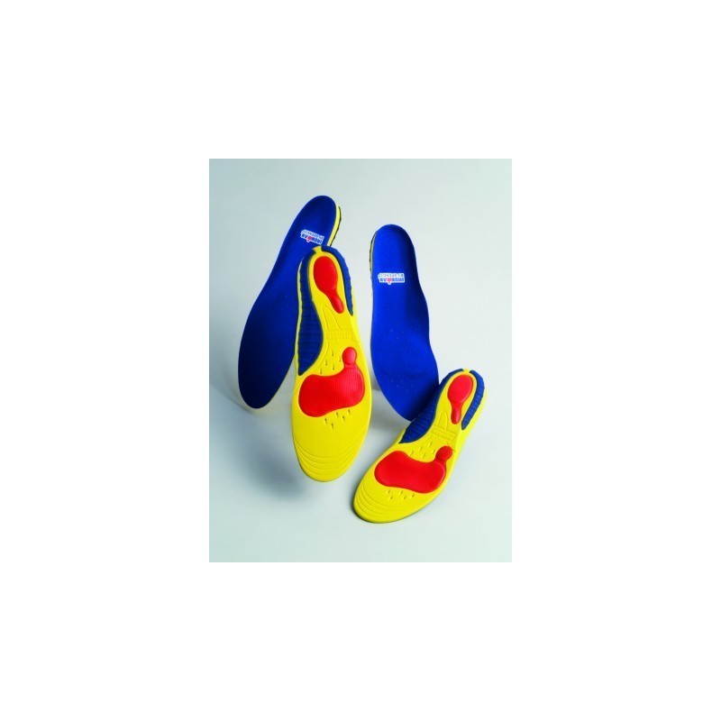 Aparato anatómico de centrado: Ayuda a colocar el pie correctamente para la estabilidad. Almohadillas contra choques: Absorben el impacto y los choques que afectan al antepié y el talón.