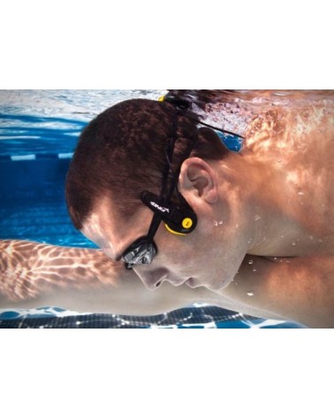 El reproductor Neptune MP3 Player se sujeta a las gomas de las gafas con firmeza y sin interferir en la brazada.