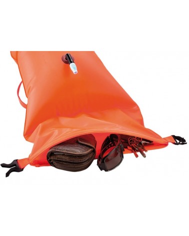 La boya no tiene un impacto negativo en su rendimiento de natación, incluso si se arrastra hacia atrás mientras nada. Ofrece un bolsillo impermeable en el interior, adecuado para llaves y artículos más pequeños. La válvula giratoria simple facilita el inflado y desinflado Si es necesario, la boya también se puede utilizar como ayuda a la flotabilidad.